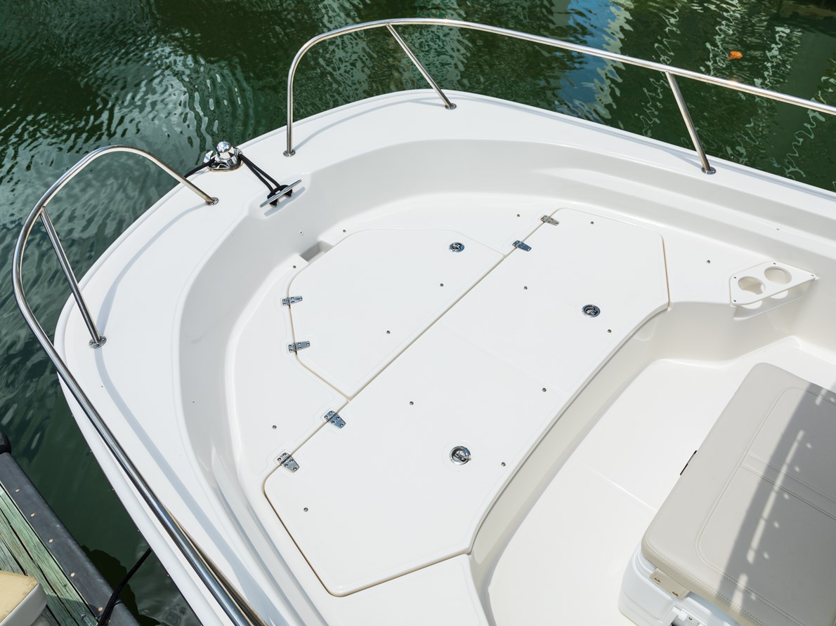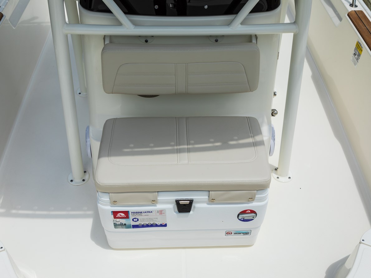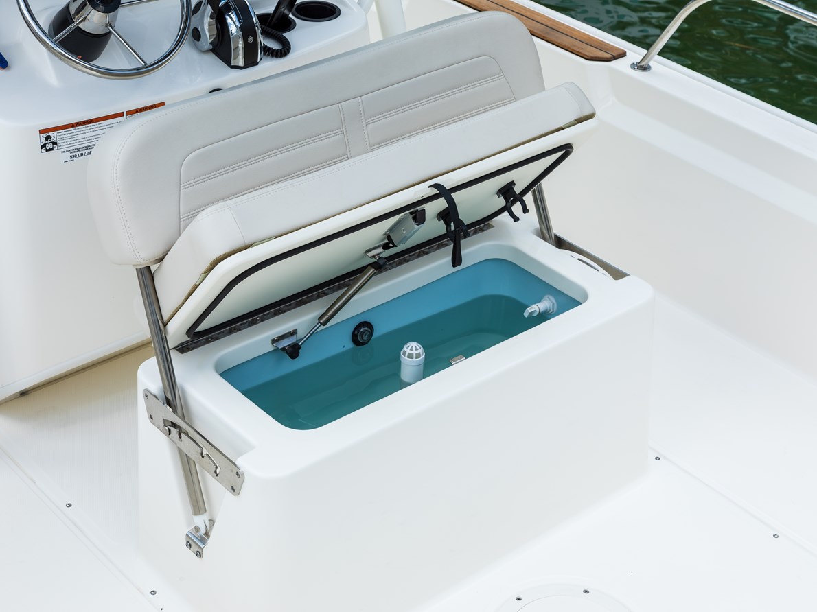 - Optional Fishing Package includes 72-quart cooler seat, tackle drawers and console rod holders.
