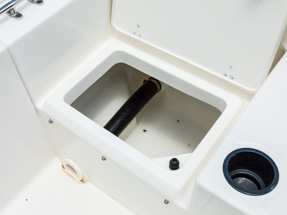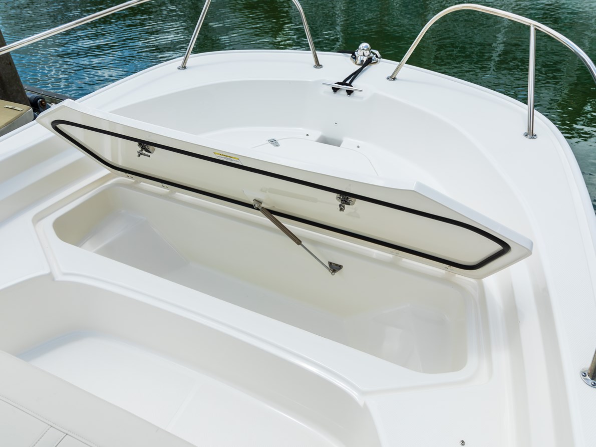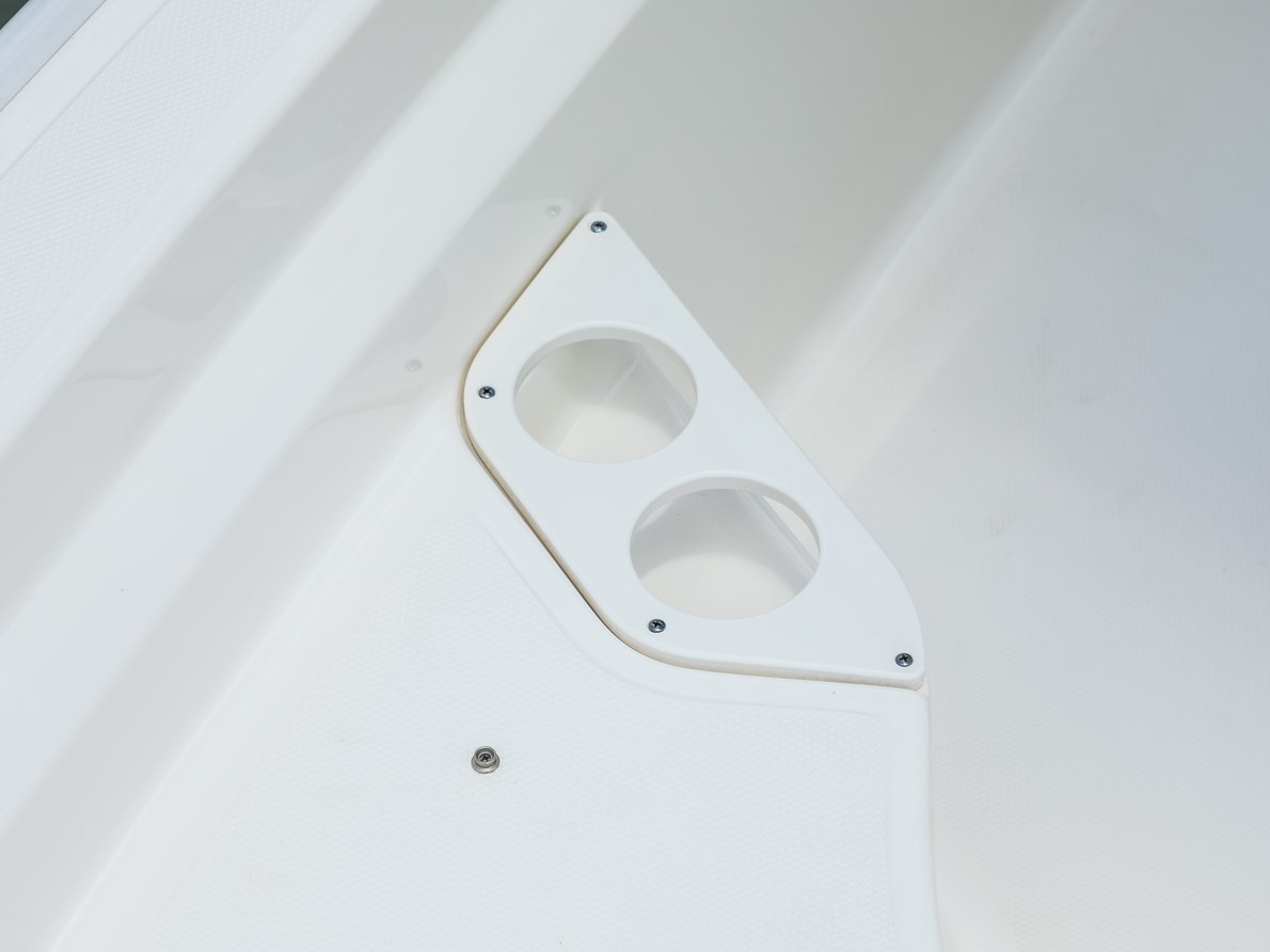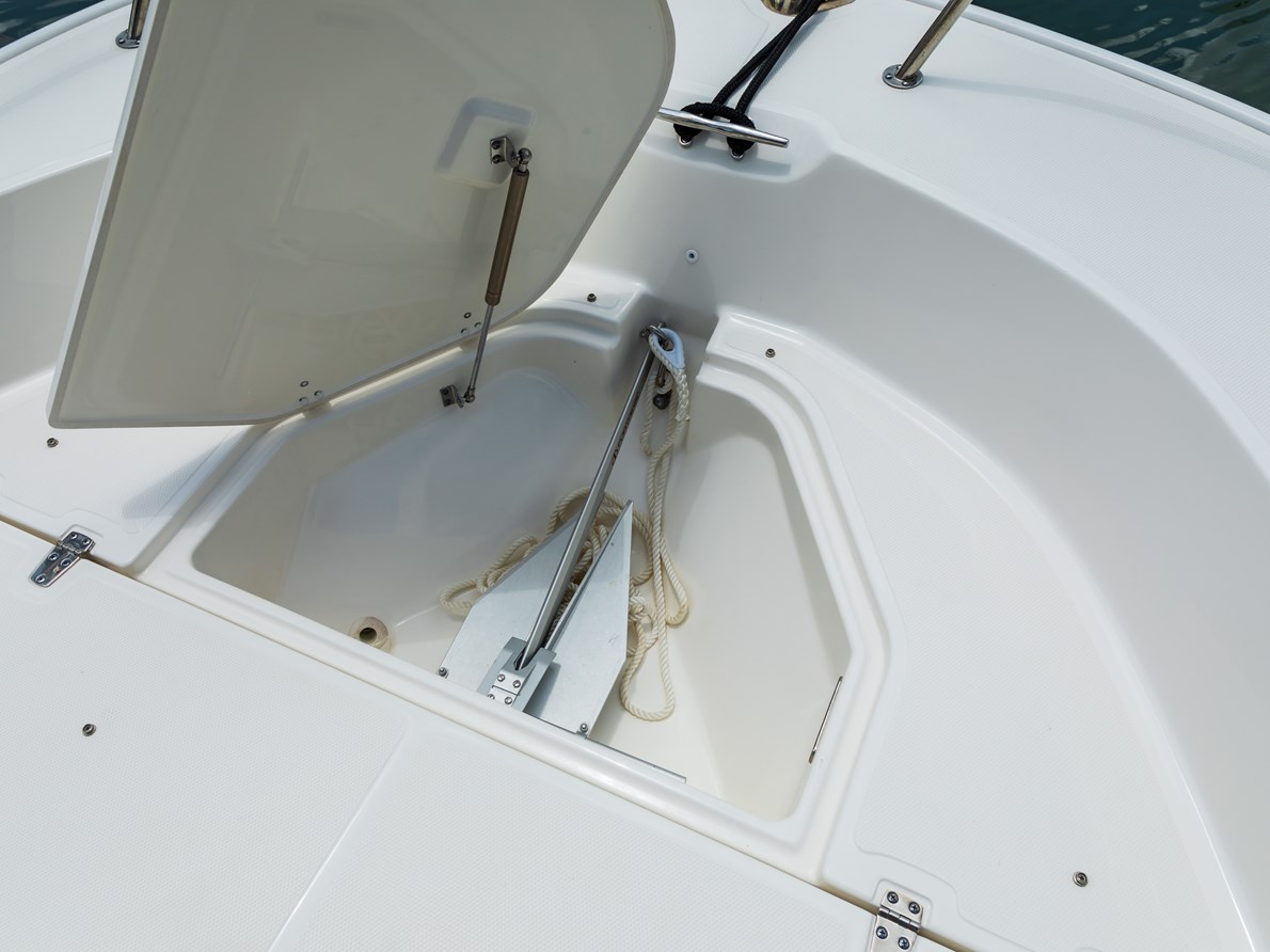 - Optional Fishing Package includes 72-quart cooler seat, tackle drawers and console rod holders.