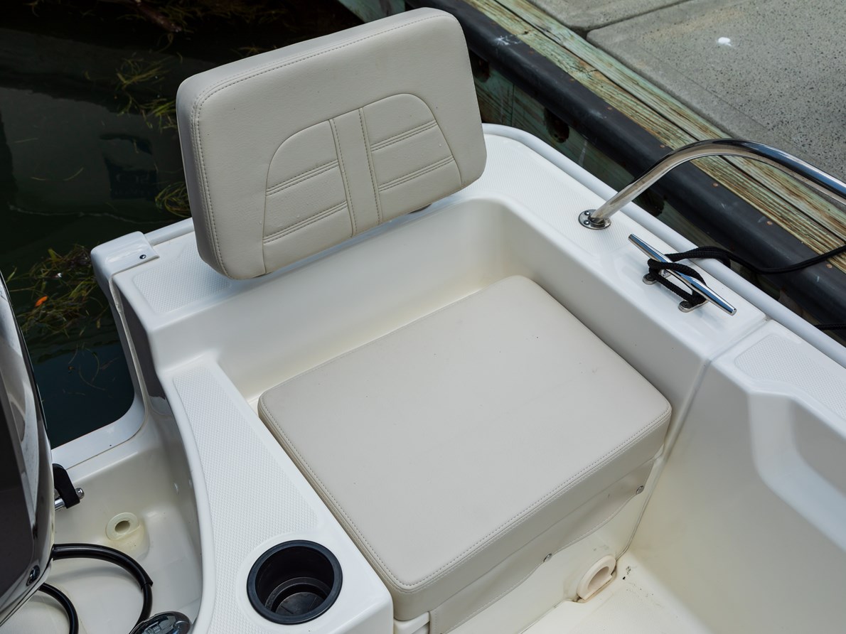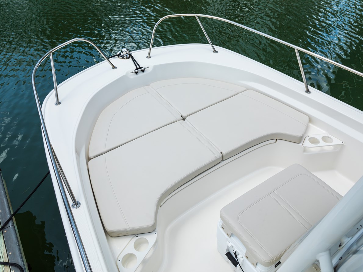 - Optional port and starboard aft seating features comfortable cushions and removable backrests.