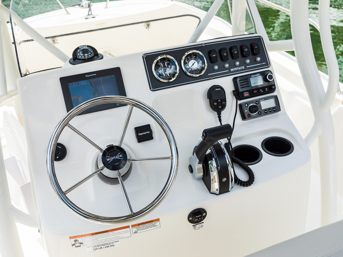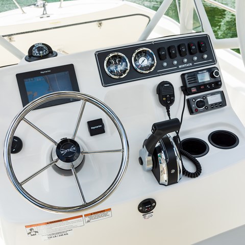 - Helm console available with state-of-the-art Raymarine® navigation and fishfinding electronics including RealVision 3D.