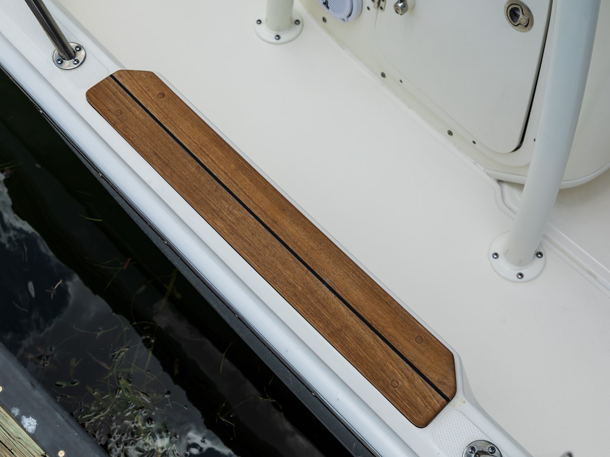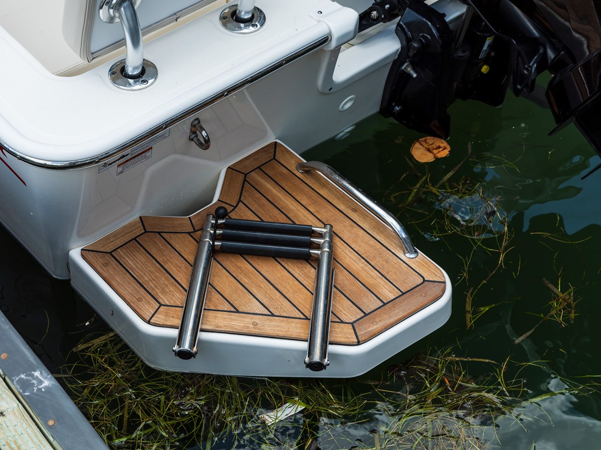 - Teak package adds stylish touches to the boarding steps and swim ladder.