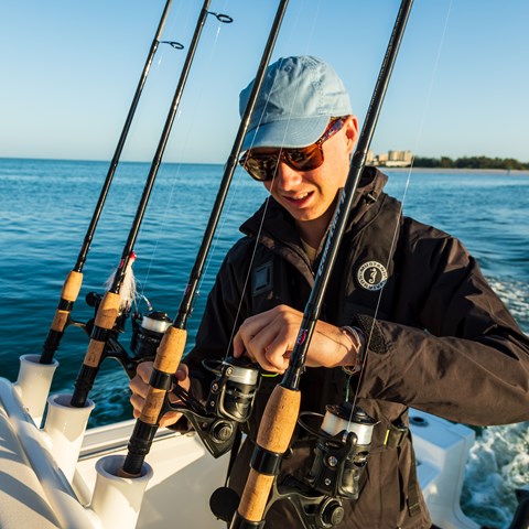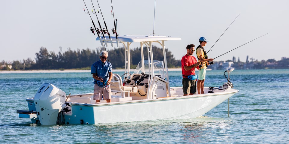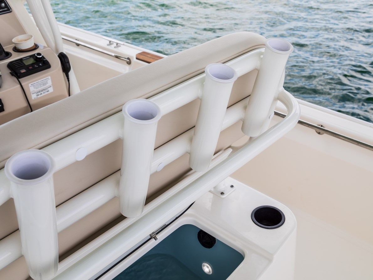 - Deluxe Leaning Post option adds 30-gallon livewell and raw-water washdown.