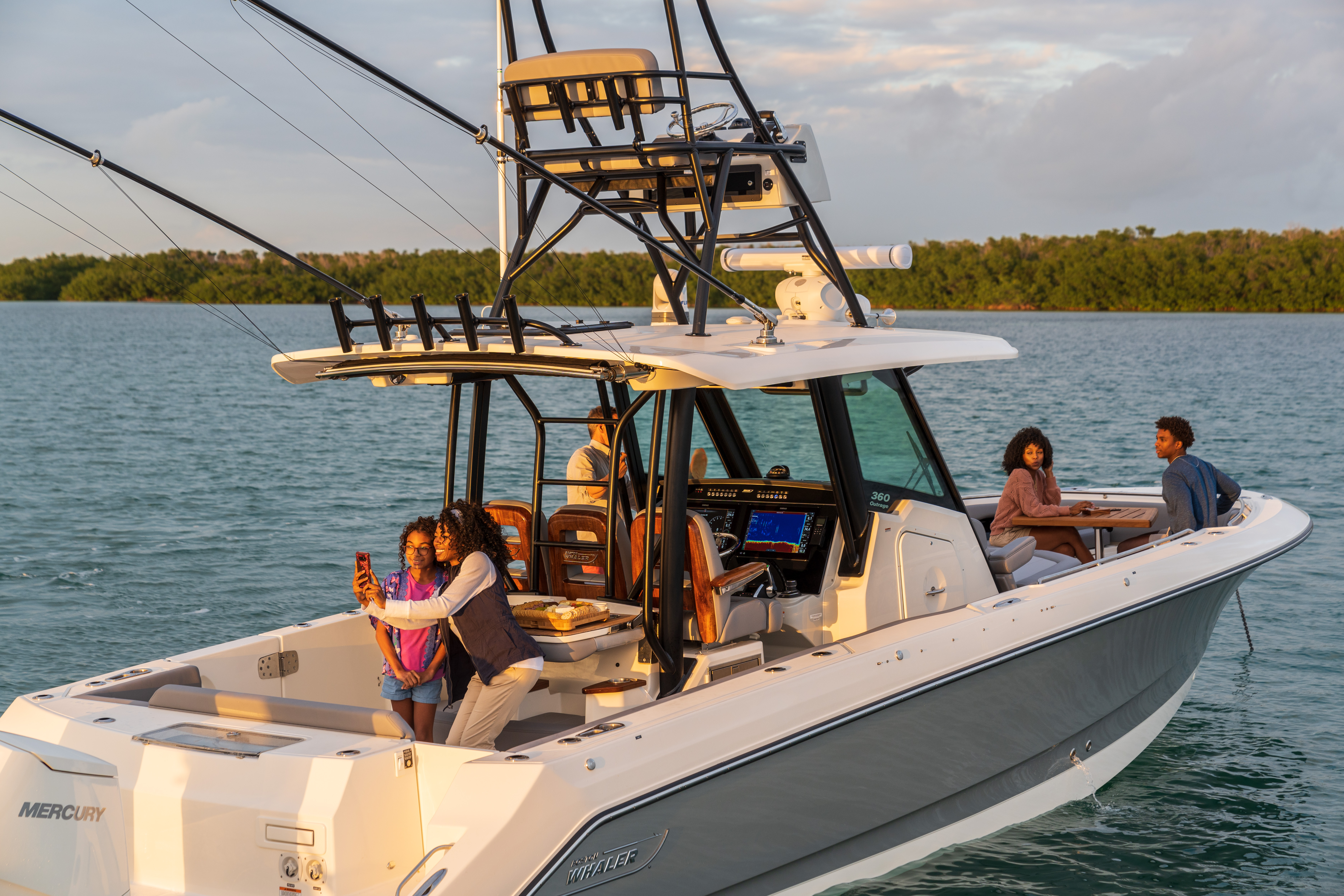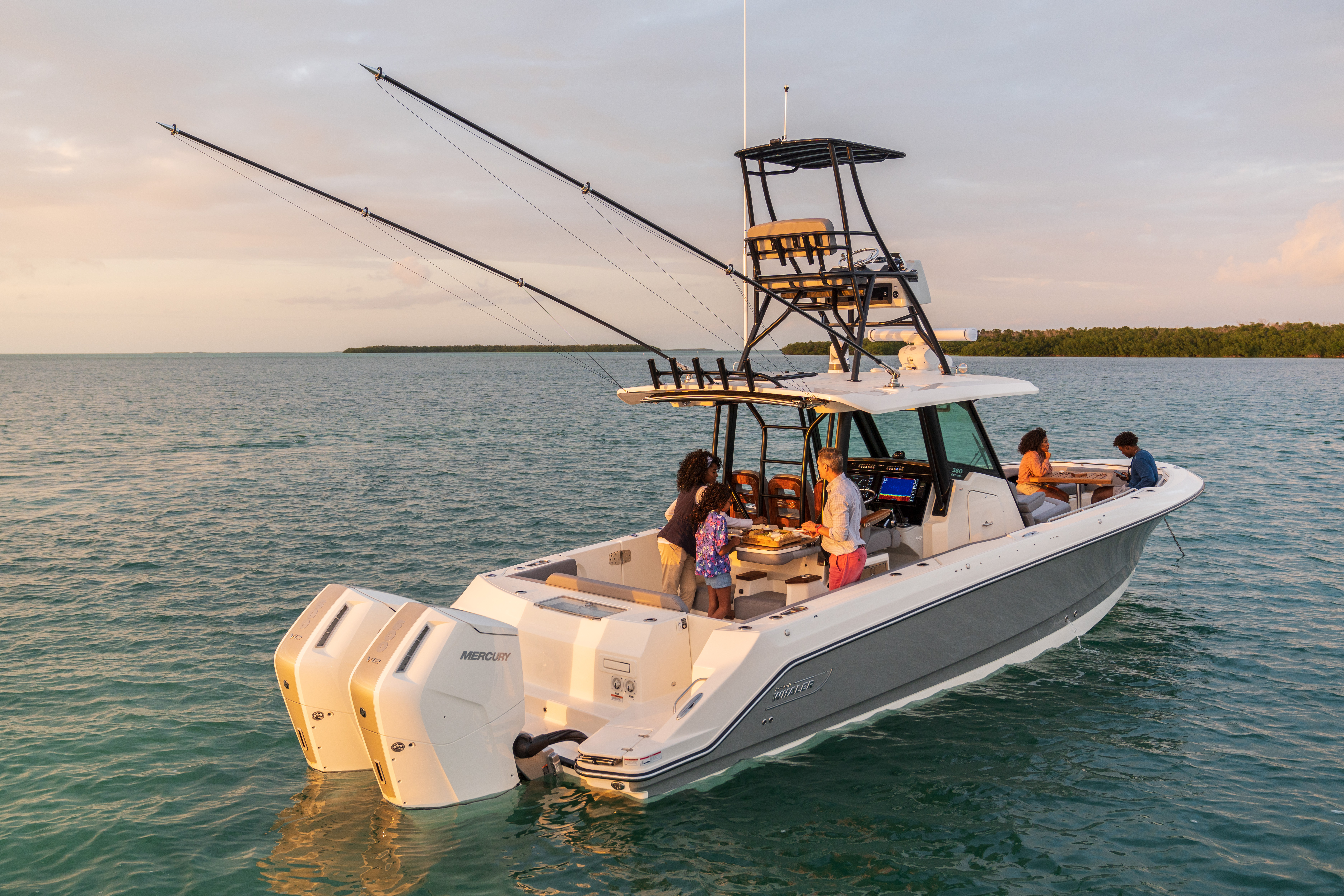 The 360 Outrage represents a new standard of excellence for offshore center consoles. Designed from the keel up to maximize space and functionality, the 360 Outrage delivers an effortless boating experience and a tremendous amount of flexibility. Cutting-edge technology is evident throughout, from the intuitive helm station to the available lithium-ion battery system. Thanks to its perfectly power-matched propulsion options, including the new 600-hp V12 Mercury® Verado®, the 360 Outrage is not only the most versatile and ergonomic center console on the market — it’s also the most fun.