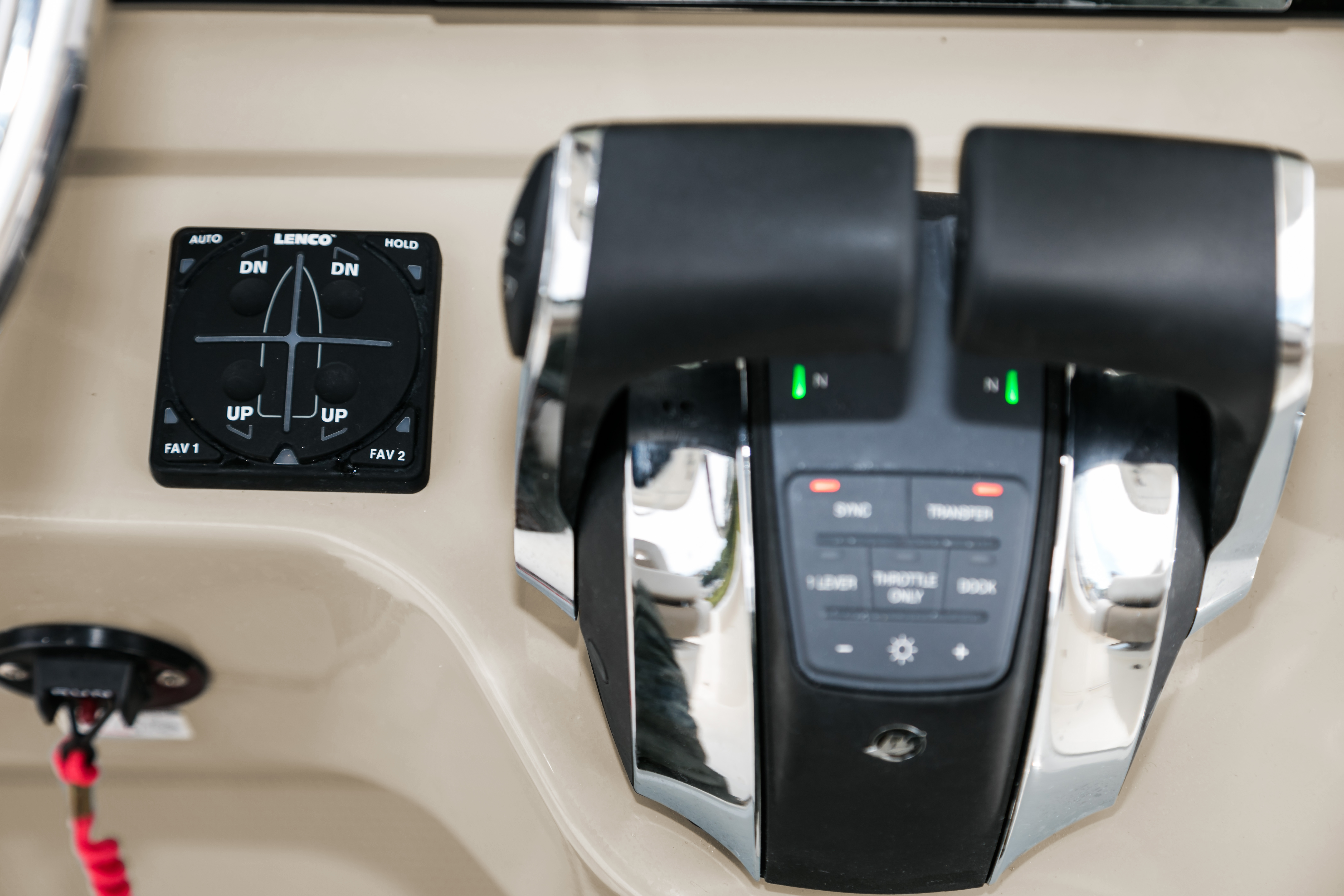 A state-of-the-art helm station, now with user-friendly Simrad technology and larger electronics, available Joystick Piloting, and DockSense deliver effortless command.