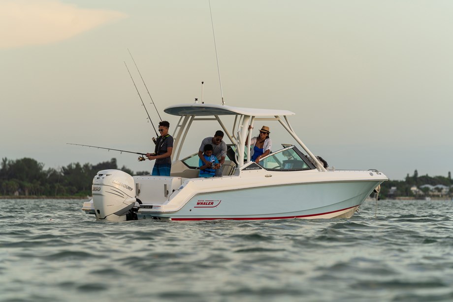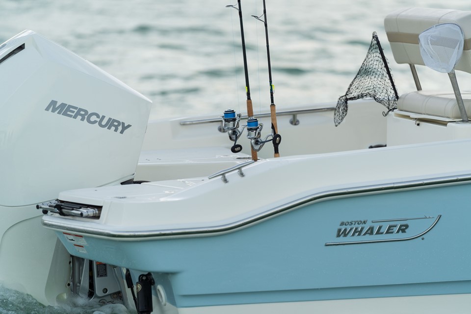 Fishing features include convenient rod storage accessible via the bow, a centerline fishbox and an optional aft livewell.