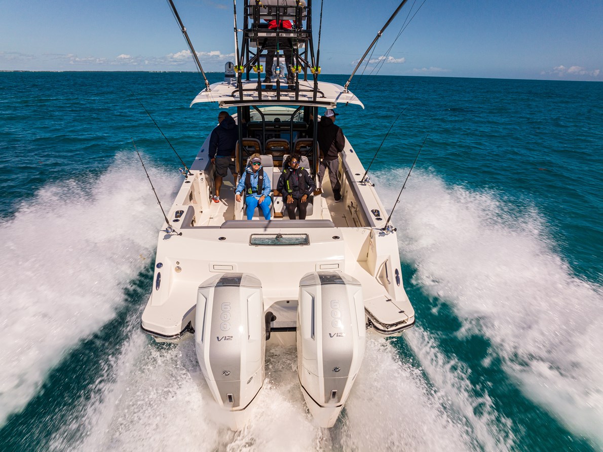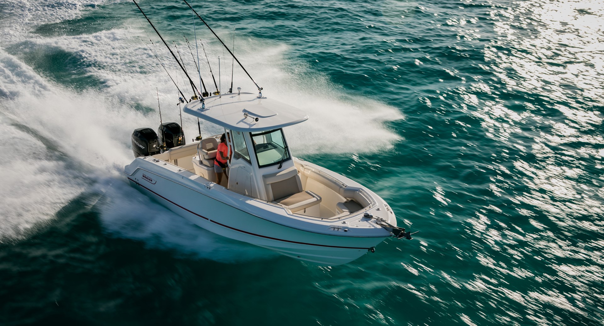 Boston Whaler’s Outrage and Conquest series fall into this deep sea fishing boat category, and offer many benefits that give anglers a distinct advantage: massive fuel capacity for long-distance runs; a spacious cabin and head for spontaneous overnighters; and a host of purpose-driven fishing features like the latest technology, fishing rod holders at every turn, versatile prep stations, and optional upper stations for long-distance fish sighting. With a Boston Whaler, you also enjoy the benefits of proprietary Unibond™ hull construction, delivering the softest, safest, driest ride and smooth, predictable handling, no matter what the seas throw your way.