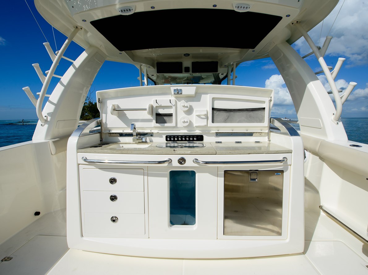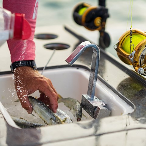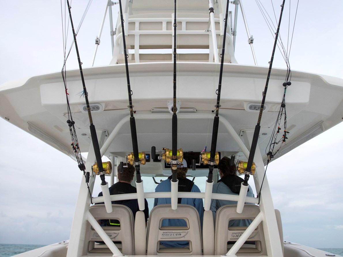 Look for attributes like spacious layouts with lots of room to move and fight a fish; stainless steel rod holders that won’t rust or break under the tension of a goliath fish on the line; aerated livewells and large fishboxes to protect your bait and your trophy catches; outriggers for deep-sea trolling; state-of-the-art technology that gives you the upper hand; and fuel capacity to venture wherever the fish are biting. You also want a well-crafted hull that slices cleanly through big water and provides a soft, dry ride in even rough weather conditions.