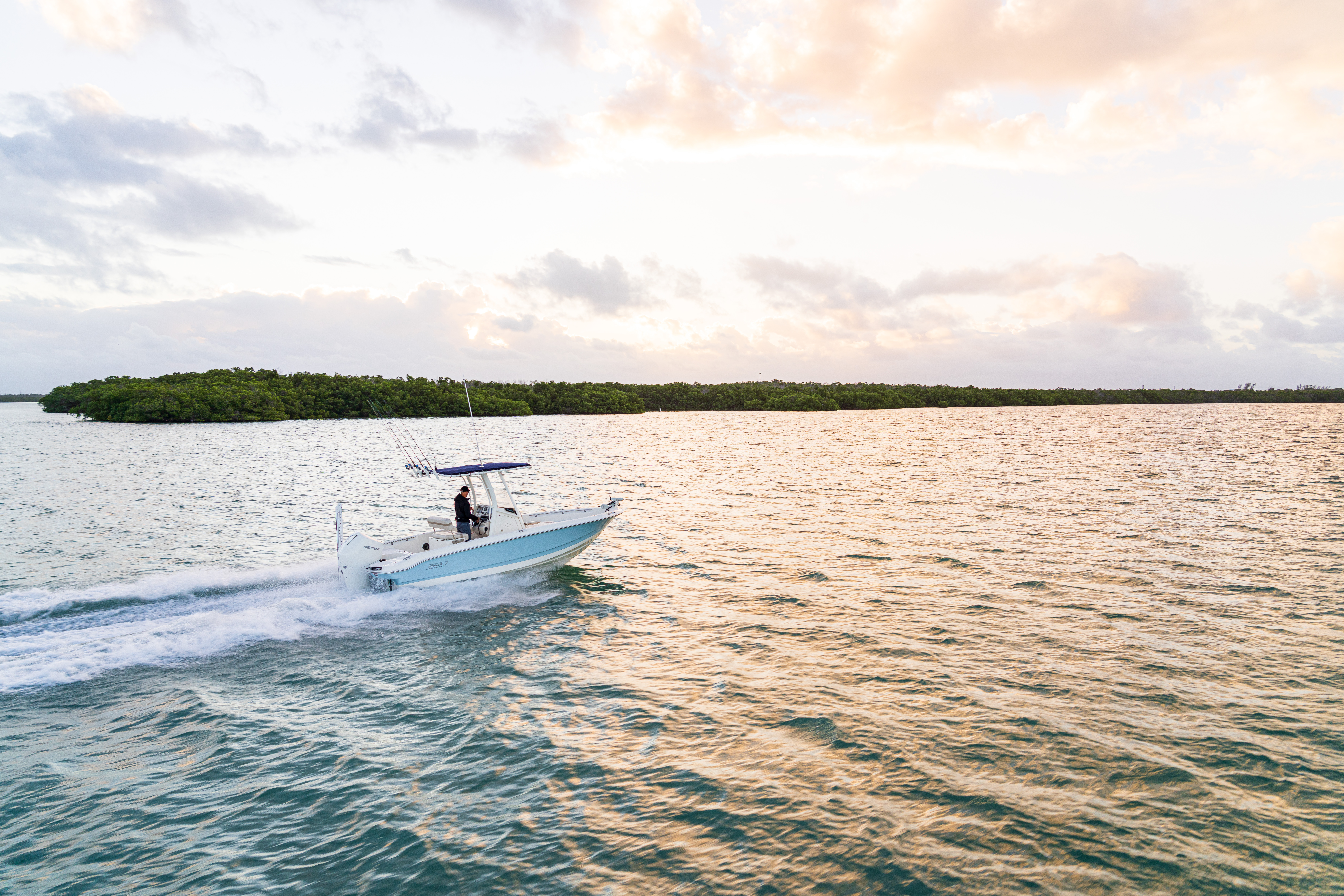Meet the bold 220 Dauntless, a center console boat that combines inshore fishing excellence with offshore cruising confidence. More than a bay boat, the 220 provides spacious comfort, smooth-riding performance and easy access to the water for fishing, watersports, cruising and beyond. From a bold past comes the new leader in versatility: the all-new Dauntless.