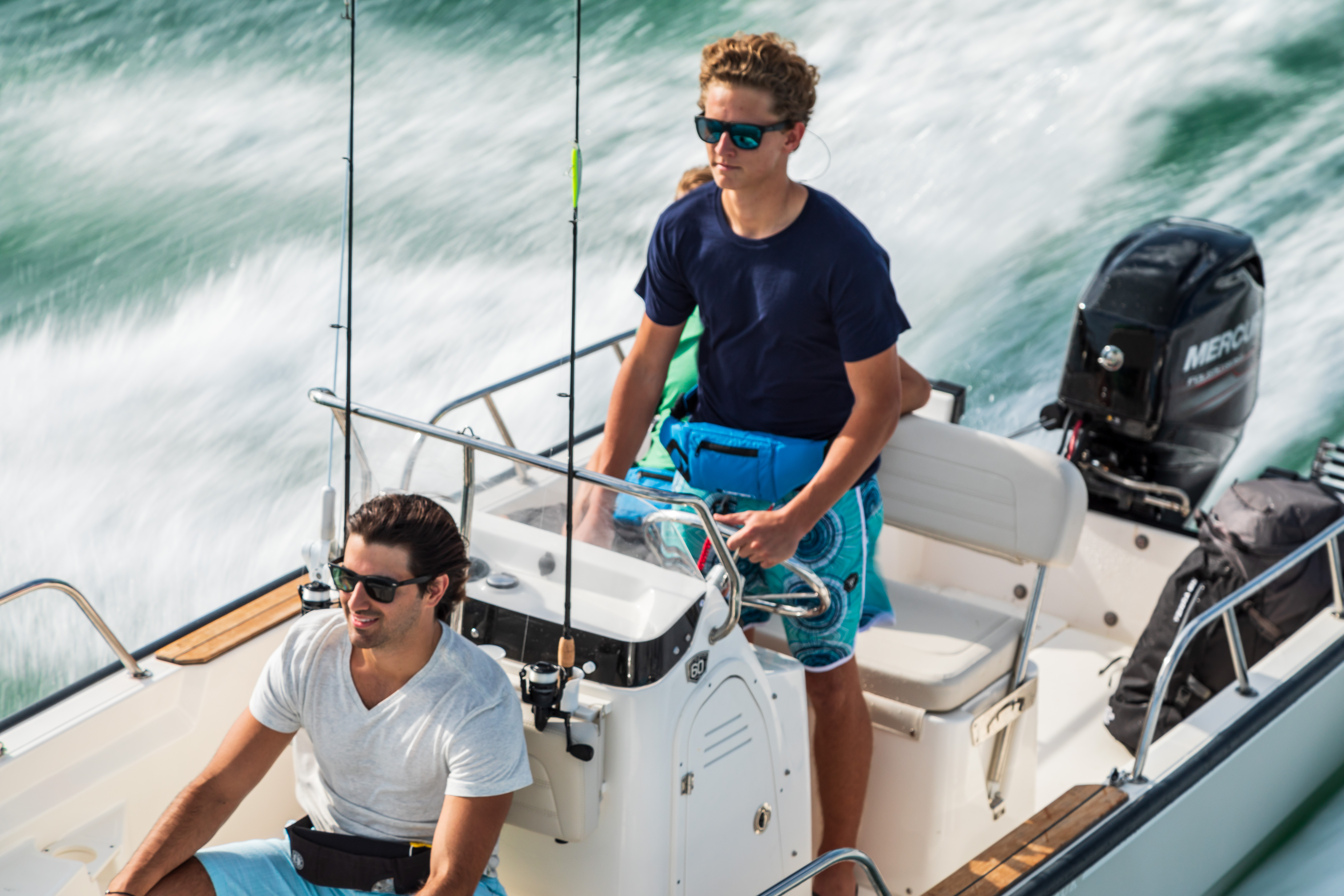 - Standard 60-hp Mercury® Command Thrust FourStroke engine provides reliable, efficient performance.