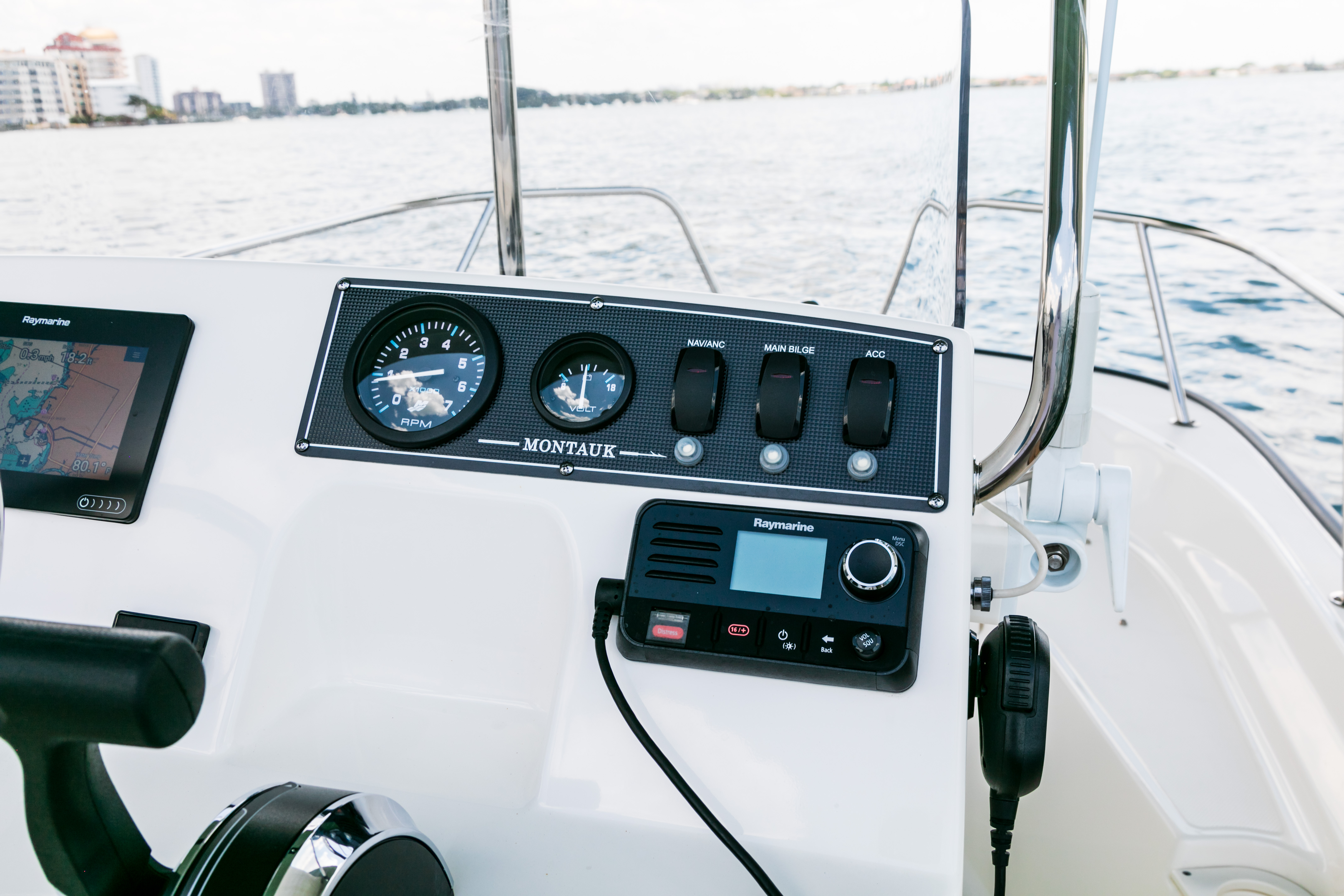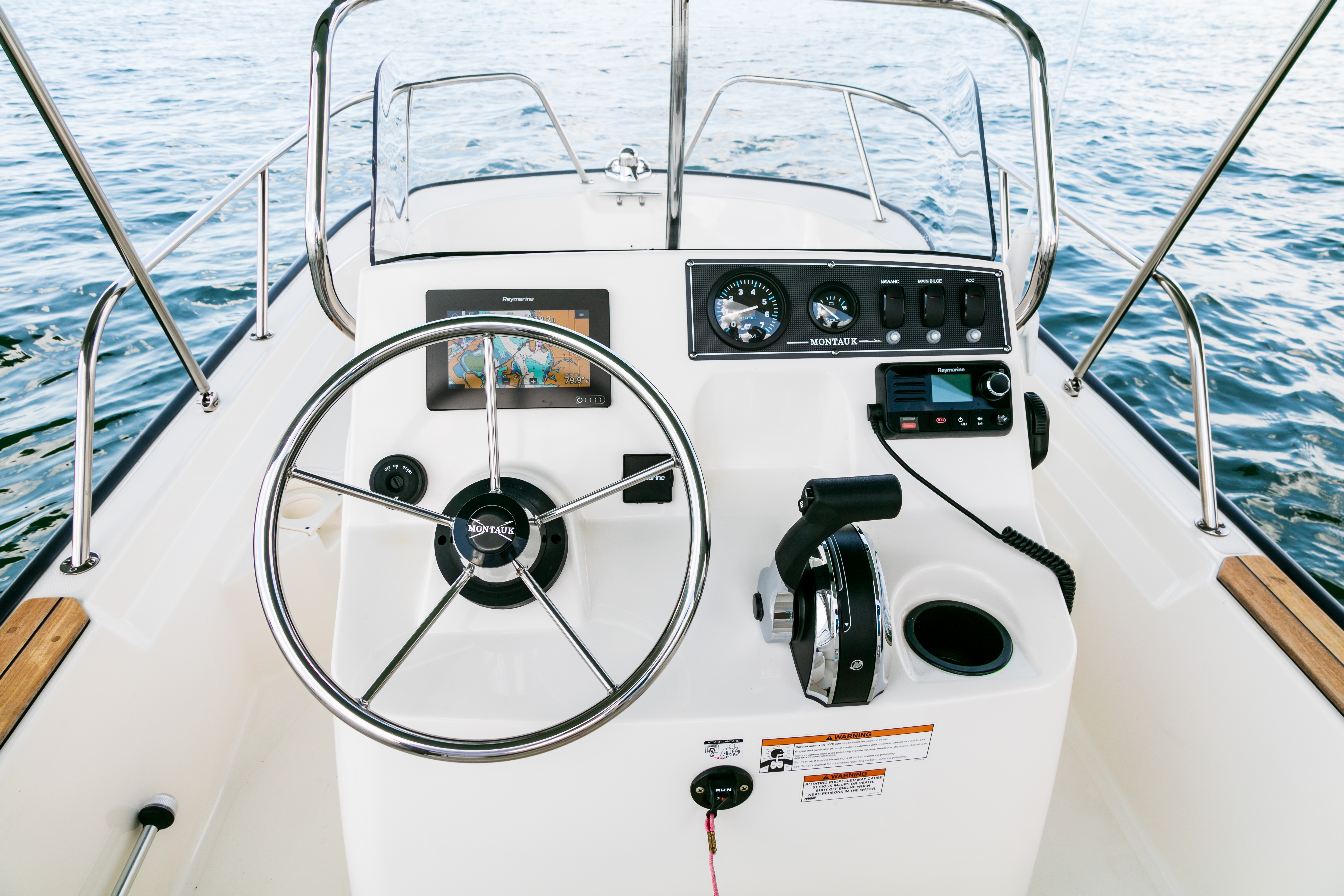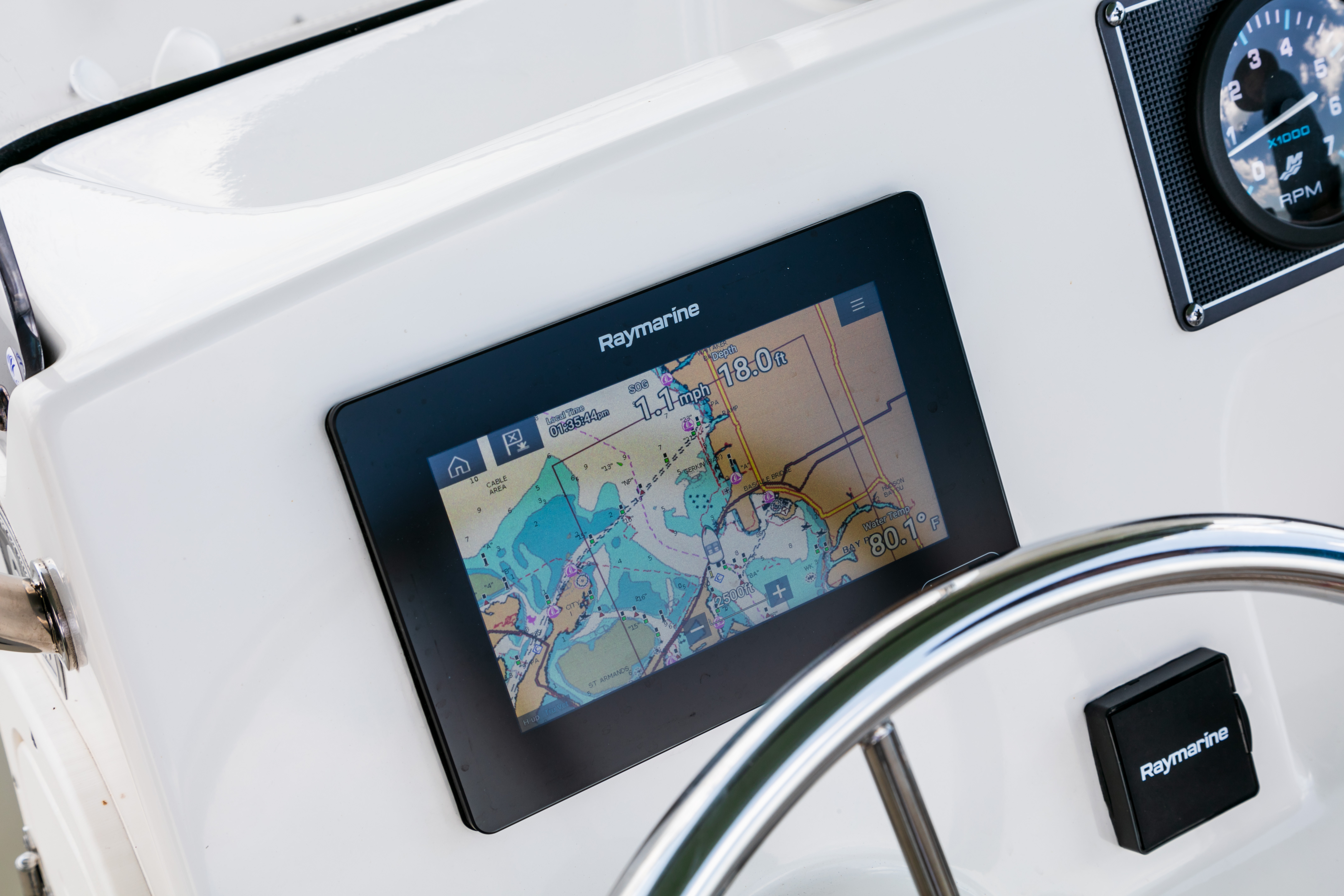 - Available Raymarine® navigation and fishfinding electronics including RealVision 3D.