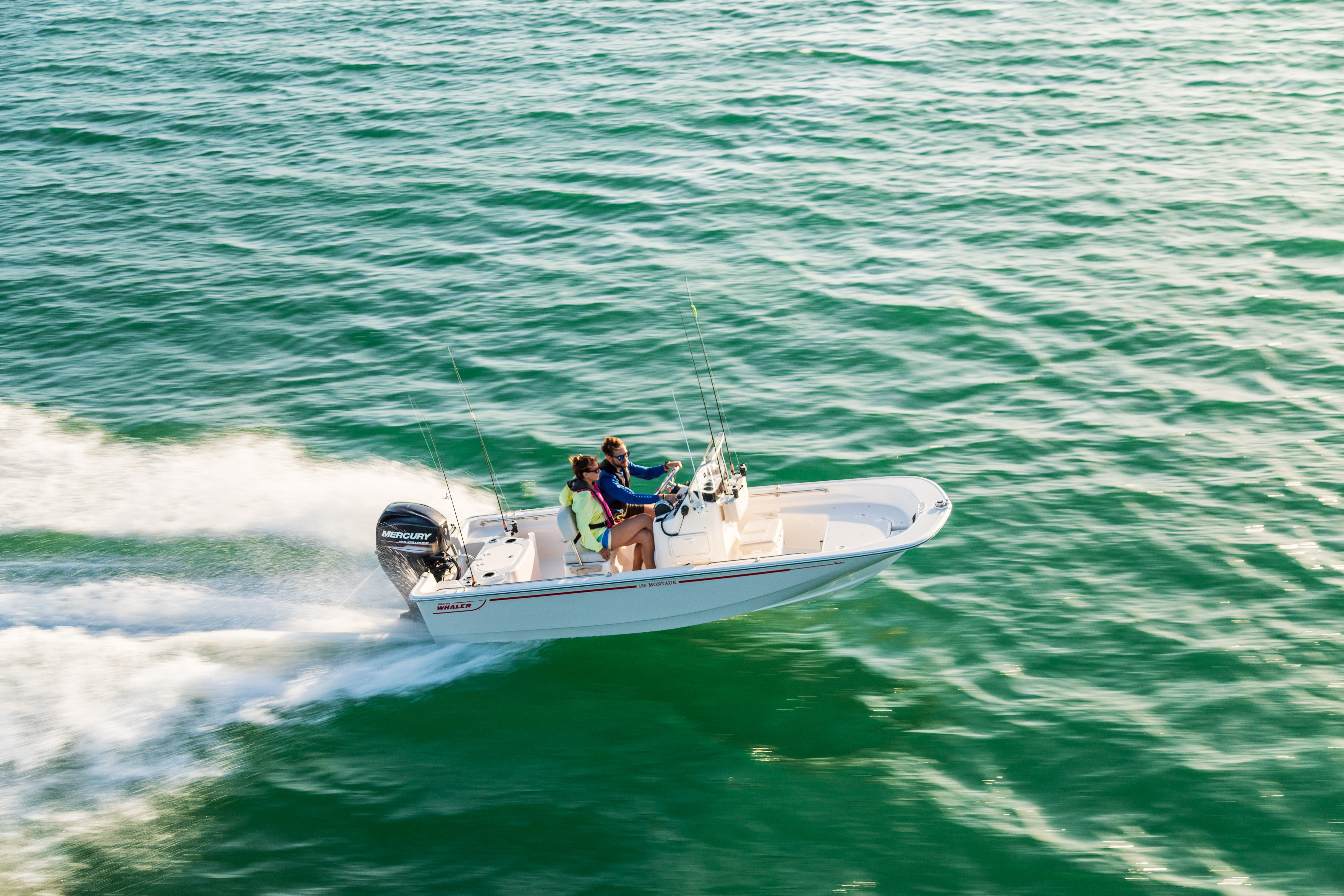 Boston Whaler's 150 Montauk reflects over 60 years of heritage combining time-tested utility and classic lines with modern comfort, design and technology. Incredibly easy to operate, easy to clean, and easy to love, the 150 Montauk excels for both fishing and watersports. A spacious center console layout maximizes every inch of its nimble size, while Whaler's precision-engineered hull ensures a soft, smooth ride.