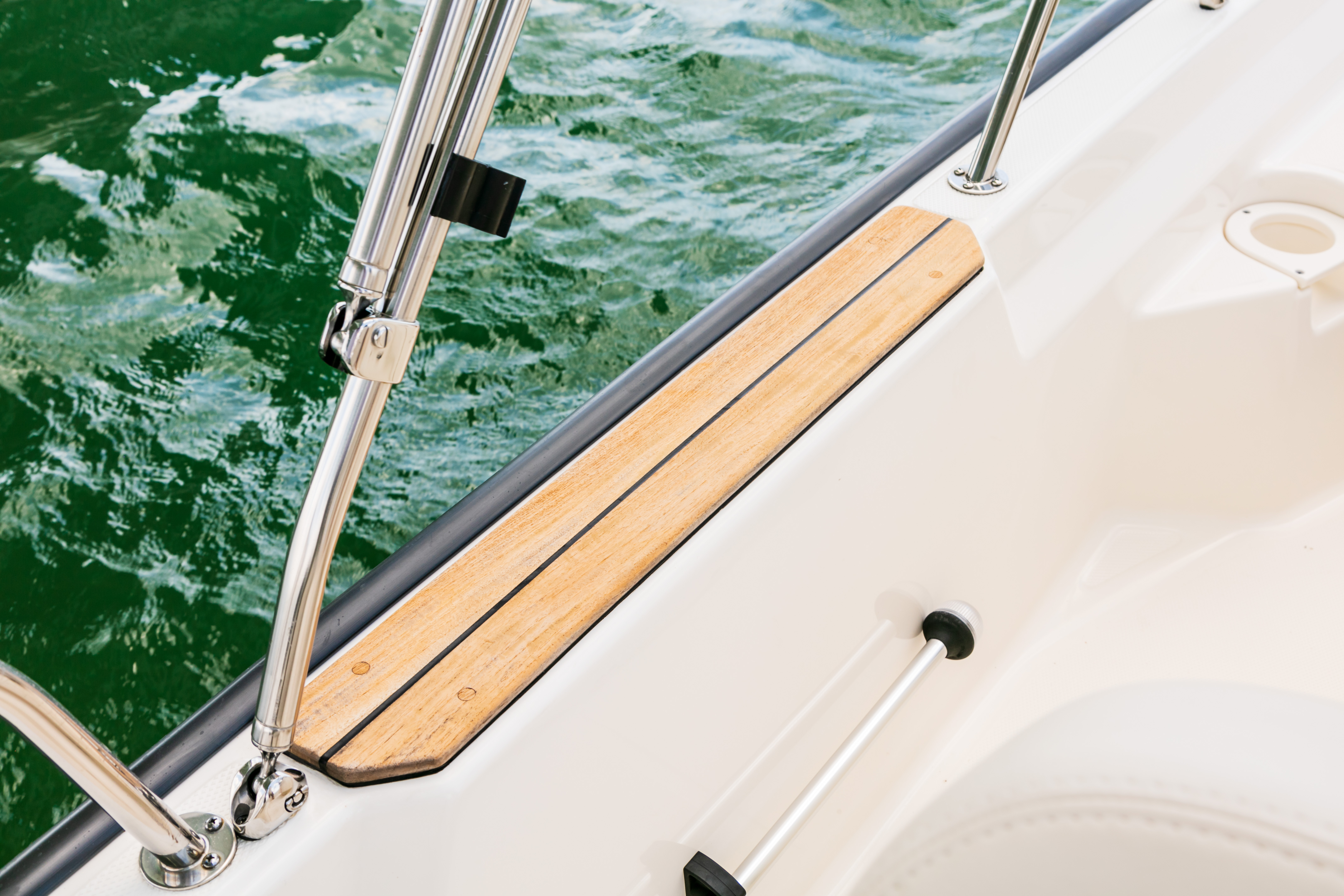 - Optional teak port and starboard mid-ship boarding steps for easier access than ever.