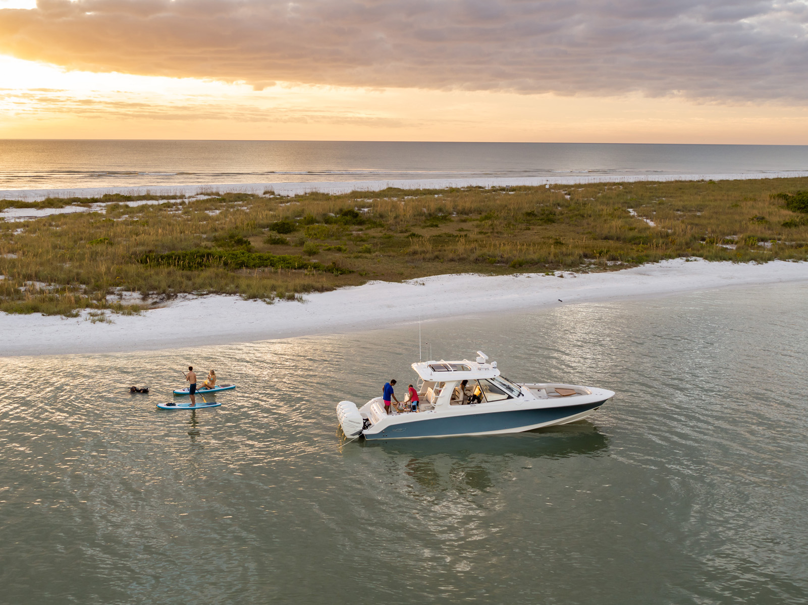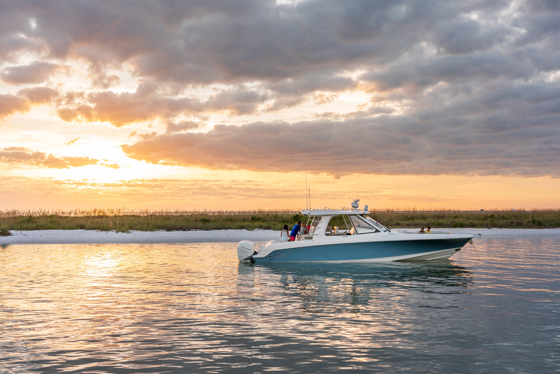Let the adventures begin: Introducing the newest member of Boston Whaler's exciting Realm family, the versatile 380 Realm. Combining incredible capability and performance with outstanding comfort, the 380 Realm is designed to make any on-water dream possible. Amenities for entertaining include a robust cockpit prep center; a massive, refrigerated under-seat cooler; a social open bow and more. The boat's spacious center-console layout and brilliant new windshield design provide unobstructed views, while a large integrated hardtop provides tons of shade and protection from the elements - all the way to the horizon and beyond.