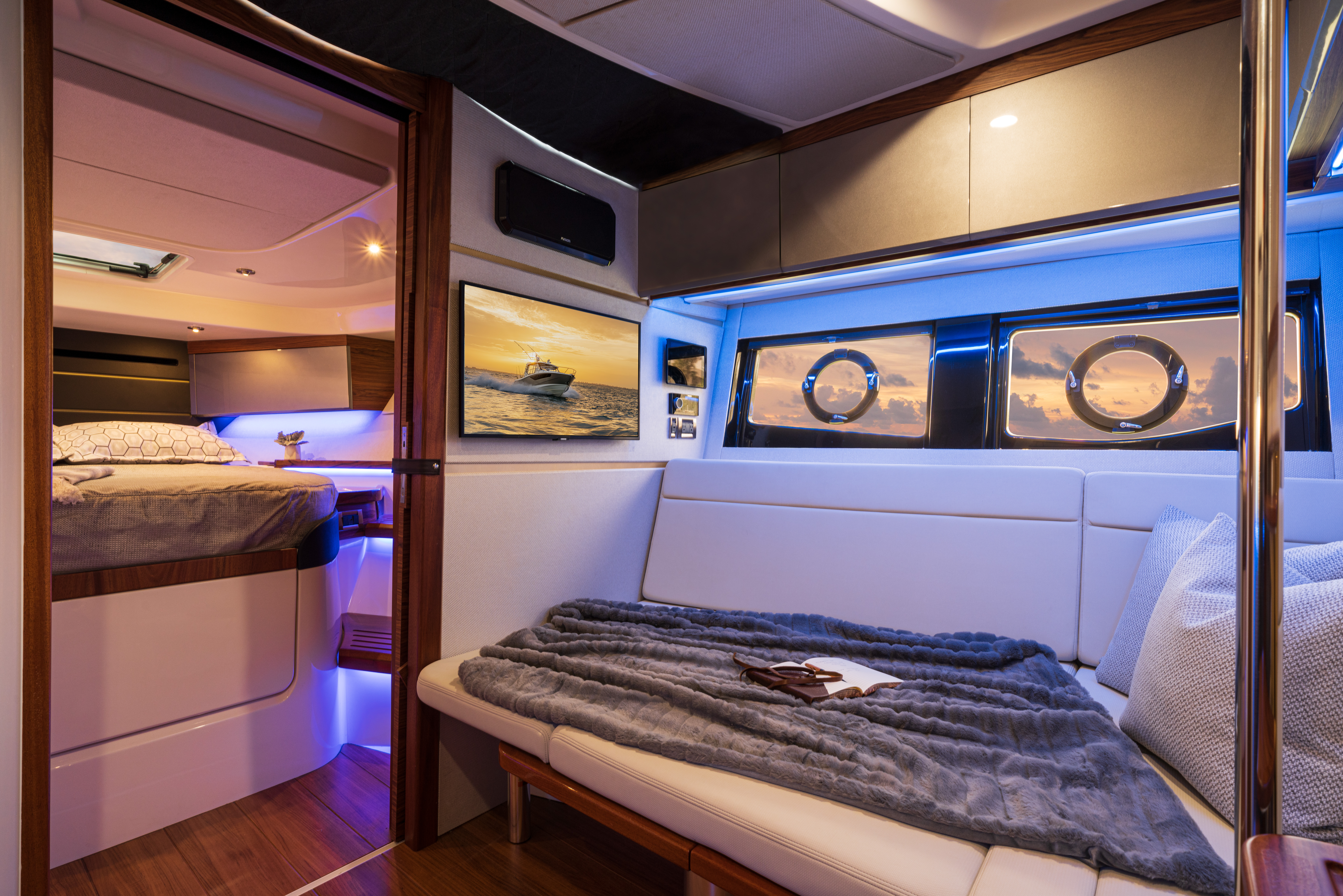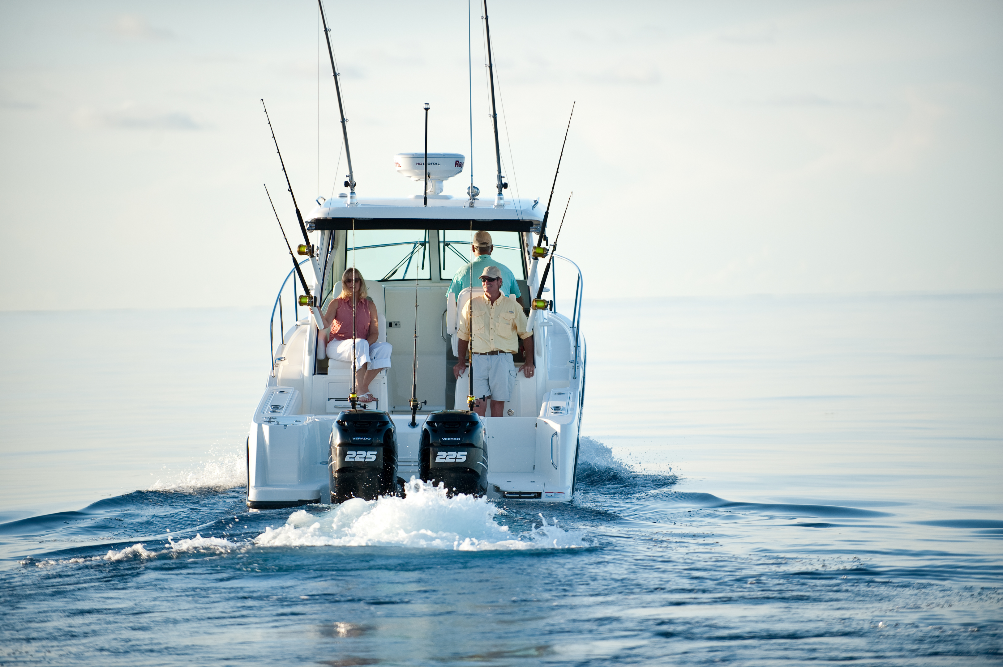 Look for attributes like spacious layouts with lots of room to move and fight a fish; stainless steel rod holders that won’t rust or break under the tension of a goliath fish on the line; aerated livewells and large fishboxes to protect your bait and your trophy catches; outriggers for deep-sea trolling; state-of-the-art technology that gives you the upper hand; and fuel capacity to venture wherever the fish are biting. You also want a well-crafted hull that slices cleanly through big water and provides a soft, dry ride in even rough weather conditions.